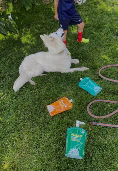 L’avantage des nutriments pelouses liquides Bleen est qu’ils ne représentent pas un danger pour tes proches une fois appliqué. Il te suffit d’attendre quelques heures pour que les nutriments sèchent avant de redonner accès à ton jardin, à tes êtres aimés (animaux, enfants…).